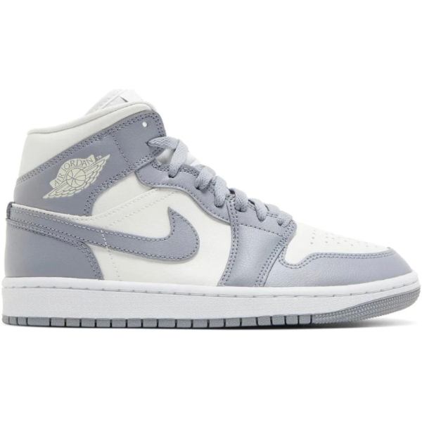 The Air Jordan 1 Low Grey Blue features a smooth white leather base with grey leather overlays on the eyelets, heel and mudguard. As with the Mid version, there is a slightly icy blue outsole. A Jordan Wings logo on the heel and a Jumpman on the tongue complete the look.