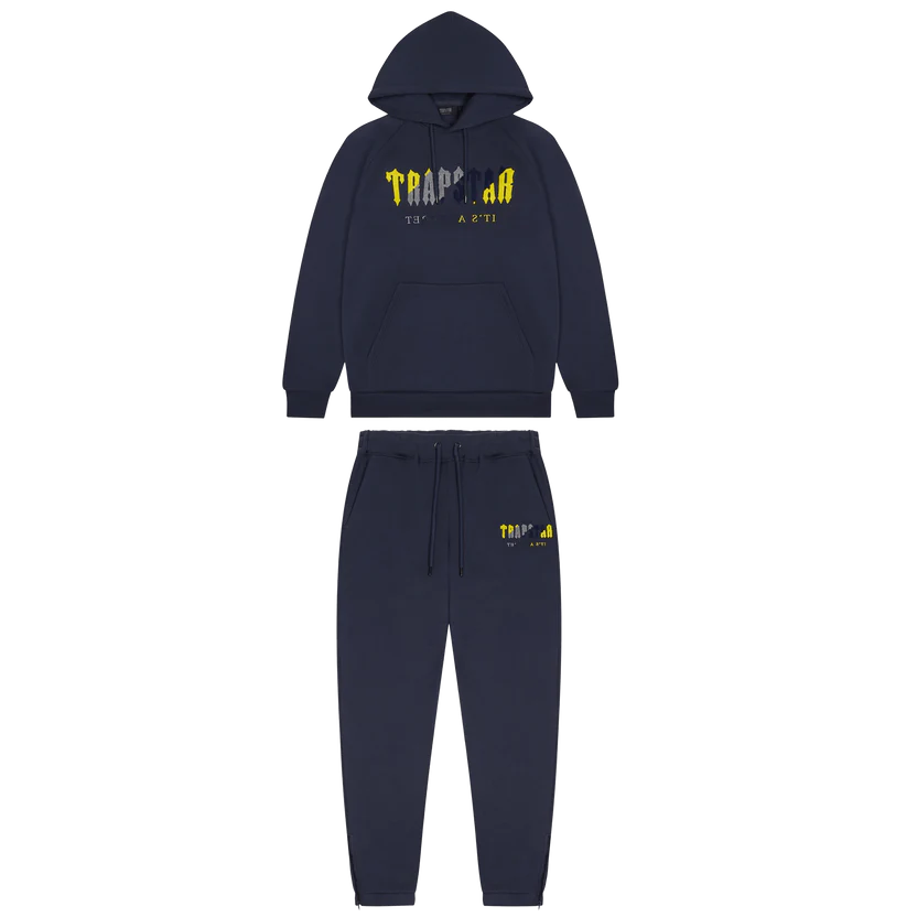 Trapstar Chenille Decoded Hooded Tracksuit-Navy/Yellow