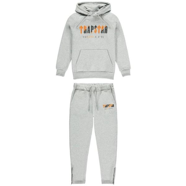 Trapstar Chenille Decoded Hooded Grey Tracksuit Grey/Orange